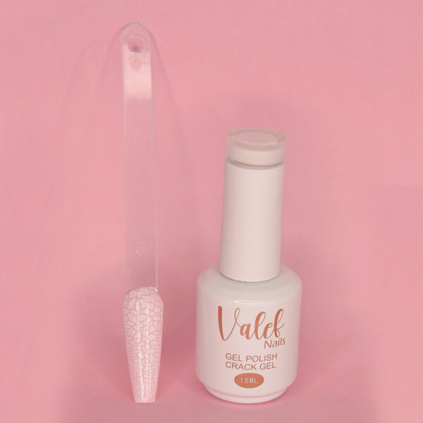 Nuestro tono craquelado genera tramas orgánicas en blanco sobre cualquier color, logrando un acabado único en cada uña.