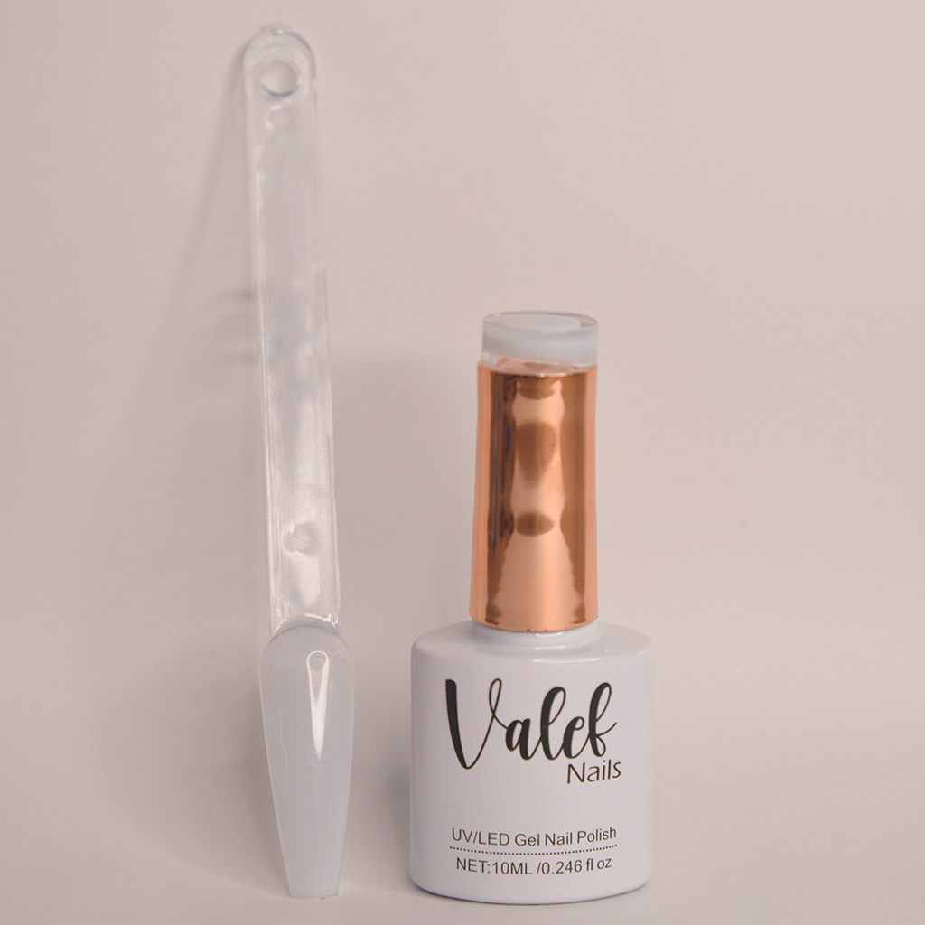 Nuestro esmalte T01 es un tono blanco traslúcido.