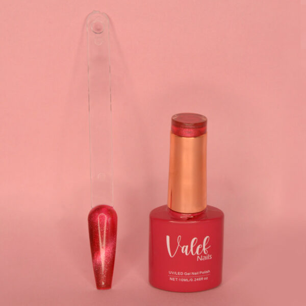 Nuestros esmaltes ojo de gato dan un acabado brillante. Este se usa con un imán especial y puedes iluminar las partes que desees para un resultado espectacular.